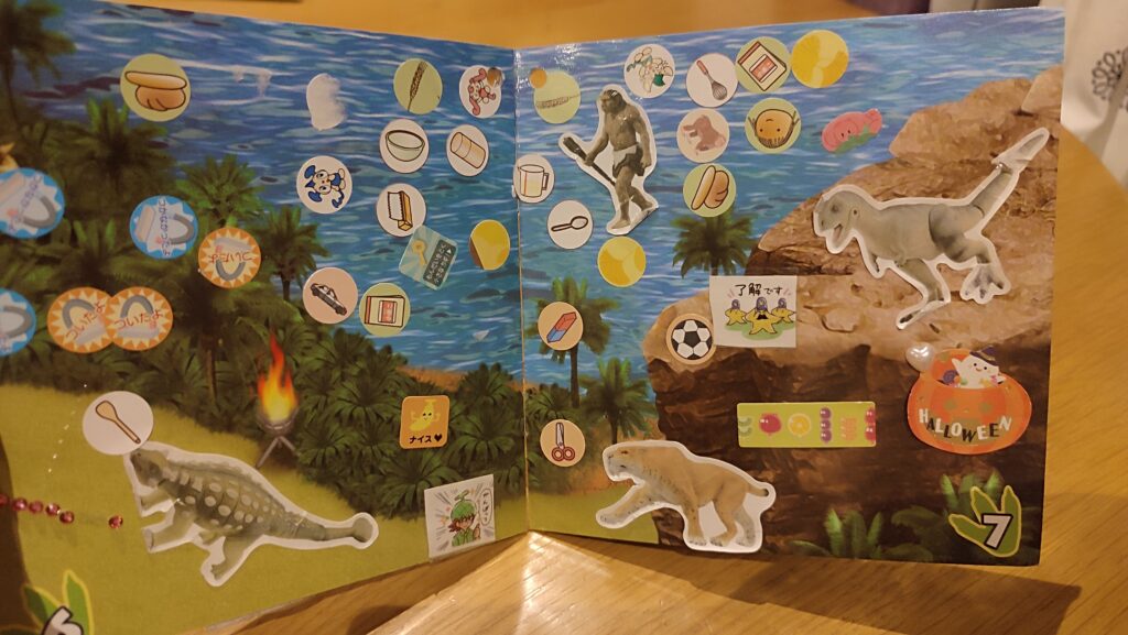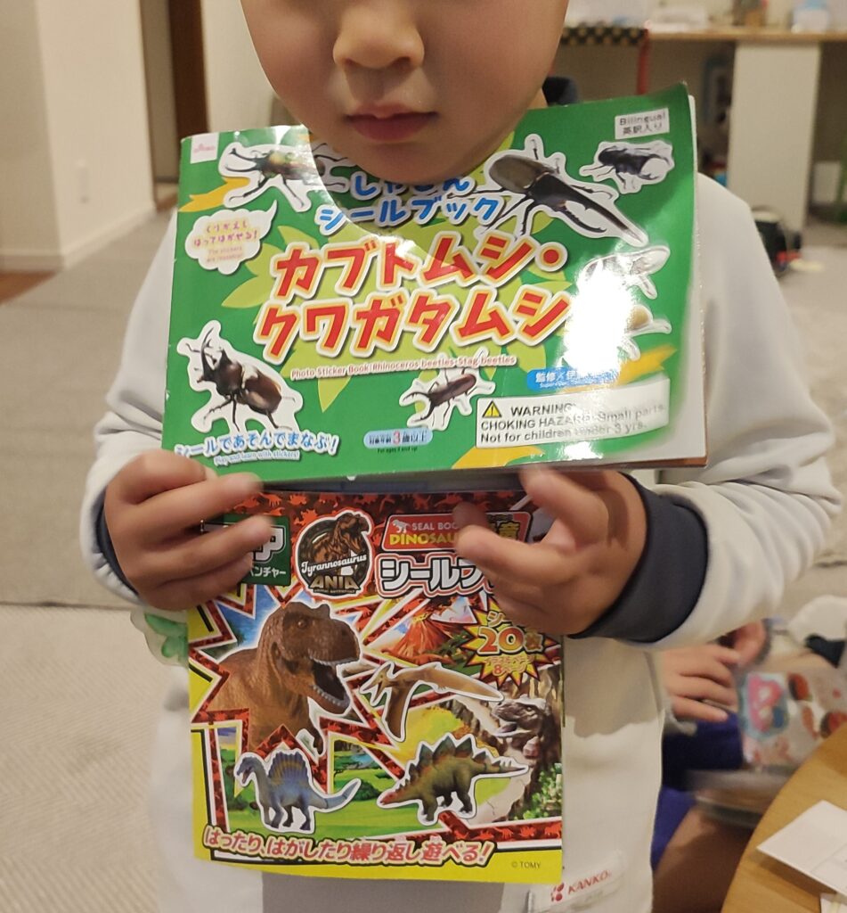 100均で購入した、アニアの恐竜&昆虫シールブック!